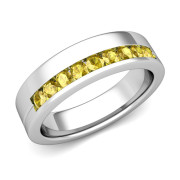 Channel Set Comfort Fit Yellow Sapphire Wedding Ring in 14k Gold, 4mm