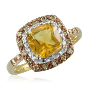 Natural Citrine and Brown Diamond Anniversary Ring 10k Yellow Gold (H, SI2, 1.70 cttw)