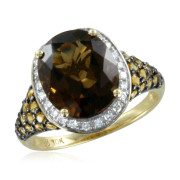 Natural Citrine and Diamond Anniversary Ring 10k Yellow Gold (H, SI2, 3.78 cttw)