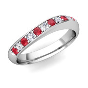 Curved Diamond and Ruby Wedding Ring in 14k Gold, 4mm