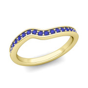 Petite Curved Blue Sapphire Wedding Band Ring in 18k Gold