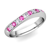 Curved Diamond and Pink Sapphire Wedding Ring in Platinum, 4mm