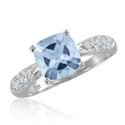 Pave Diamond and Cushion Cut Aquamarine Ring in 14k White Gold (H, SI2, 1.30 cttw)