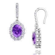 Custom Halo Diamond and Gemstone Drop Earrings in 14k, 18k Gold