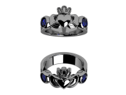 custom order: claddah rings in 14k white gold with diamond and blue sapphire