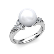 Custom Pearl Engagement Ring in 14k White Gold