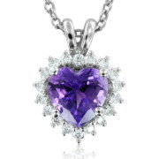 Amethyst and Diamond Heart Necklace in 18k White or Yellow Gold, 7x7mm