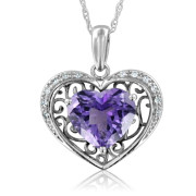Filigree Diamond and Amethyst Heart Necklace in 10k White Gold