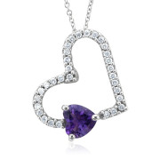 14k Gold Heart Natural Diamond and Amethyst Necklace, 1.00 cttw