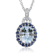 Sapphire Diamond Aquamarine Necklace with 14k White Gold Chain, 10x8mm