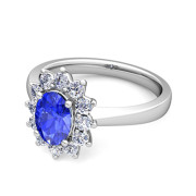 Brilliant Diamond and Ceylon Sapphire Diana Engagement Ring in Platinum, 9x7mm