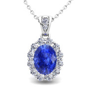 Halo Diamond and Ceylon Sapphire Necklace in 14k Gold Pendant 8x6mm