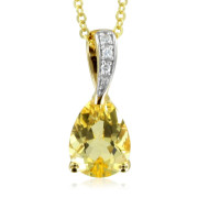 Natural Diamond and Citrine Necklace Pendant 10k Yellow Gold, 0.93 cttw