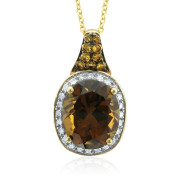 Honey Citrine and Pave Diamond Necklace with10k Yellow Gold Chain, 3.65 cttw