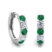 5 Stone Emerald and Diamond Hoop Earrings in 14k Gold Hoops