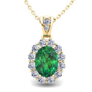Halo Diamond and Emerald Necklace in 18k Gold Pendant 8x6mm