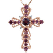 Filigree Diamond and Garnet Cross Necklace in 14K Rose Gold