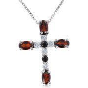 Cross Shaped Diamond and Garnet Necklace in 14K White Gold