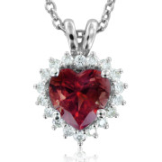Diamond and Garnet Heart Necklace in 14k White or Yellow Gold, 7x7mm