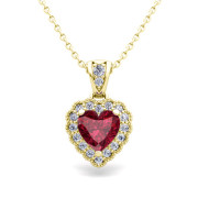 Milgrain Diamond and Garnet Heart Necklace in 18k Gold Pendant