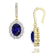 Halo Diamond and Sapphire Drop Earrings in 18k Gold, 7x5mm