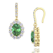 Halo Diamond and Emerald Drop Earrings in 18k Gold, 7x5mm