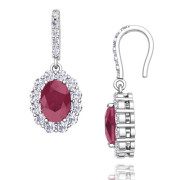 Halo Diamond and Ruby Drop Earrings in 14k Gold, 7x5mm
