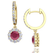 Halo Diamond and Ruby Hoop Earrings in 18k Gold, 5mm