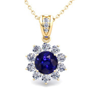 Halo Diamond and Sapphire Pendant in 18k Gold Necklace 6mm