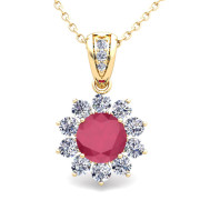 Halo Diamond and Ruby Pendant in 18k Gold Necklace 6mm
