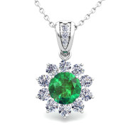 Halo Diamond and Emerald Pendant in 14k Gold Necklace 6mm