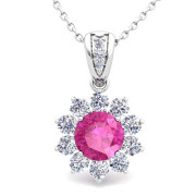 Halo Diamond and Pink Sapphire Pendant in 14k Gold Necklace 6mm