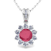 Halo Diamond and Ruby Pendant in 14k Gold Necklace 6mm