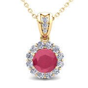 Diamond and Ruby Pendant in 18k Gold Halo Necklace 6mm