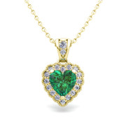 Milgrain Diamond and Emerald Heart Necklace in 18k Gold Pendant