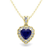 Milgrain Diamond and Sapphire Heart Necklace in 18k Gold Pendant