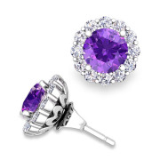 Amethyst Studs and Halo Diamond Earring Jackets in 14k Gold, 6mm