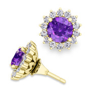 Halo Diamond Earring Jackets and Amethyst Studs in 18k Gold, 6mm