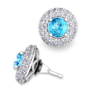 Pave Diamond Earring Jackets and Blue Topaz Studs in 14k Gold, 5mm