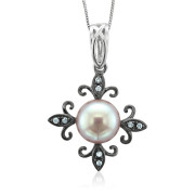 Diamond and Lavender Pearl Cross Necklace with 10k White Gold Chain