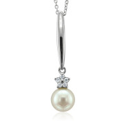 5 Stone Diamond and Pearl Necklace with 10k White Gold Chain