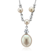 Diamond and Pink Pearl Necklace in 10k White Gold