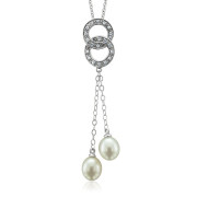 Diamond and Pearl Link Necklace with 10k White Gold Chain
