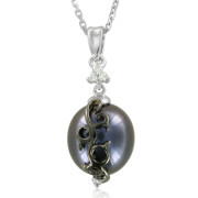 Floral Pearl and Diamond Necklace with 10k White Gold Chain, 18"