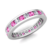 Channel Set Diamond and Pink Sapphire Eternity Band in Platinum