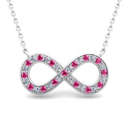 Classic Diamond and Pink Sapphire Necklace in 14k Gold Infinity Pendant