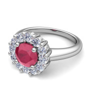 Ruby and Halo Diamond Engagement Ring in Platinum, 5mm