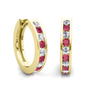 Channel Set Ruby and Diamond Hoop Earrings in 18k Gold Hoops