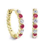 Floating Ruby and Diamond Hoop Earrings in 18k Gold Hoops