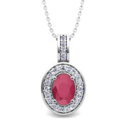 Diamond and Ruby Cluster Necklace in 14k Gold 7x5mm